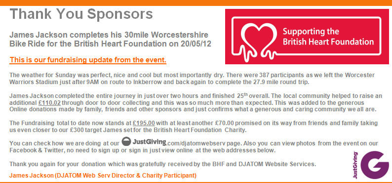 Above; our May 2012 BHF Fund Raising Update.